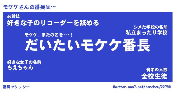 | ヒーロー風カッコイイあだ名 | 『スーパーモケケ』『ウルトラモケケマン』 |