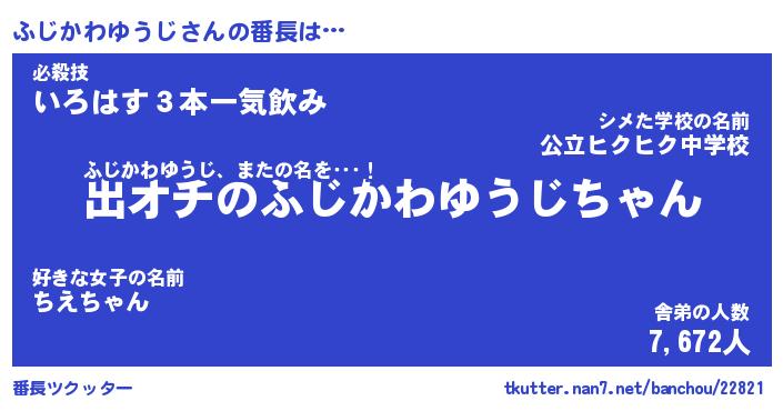 | ヒーロー風カッコイイあだ名 | 『スーパーフジカワユウジ』 |