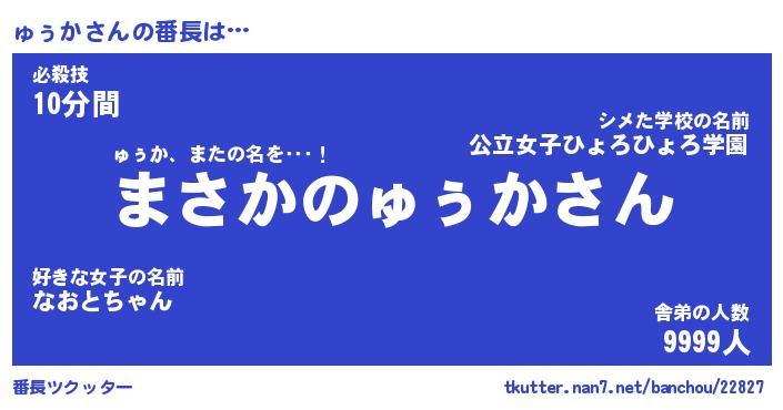| 伝説のあだ名 | 『伝説のスナイパーゅぅか』 |