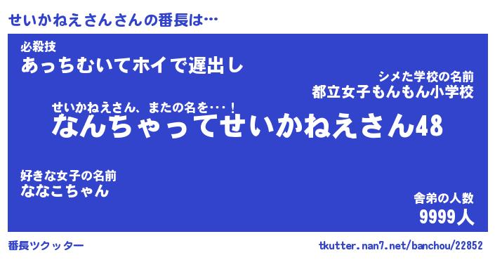 | ポケモン風あだ名 | 『セイチュウ』『セイカダネ』 |