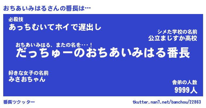 | 欧米人風あだ名 | 『マイケルおちあいみはる』 |