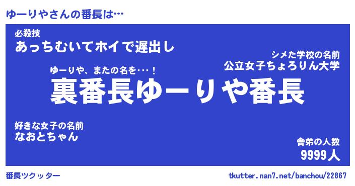 | 意味不明あだ名 | 『ペロリンゆーりや』『永久保存ゆーりや』 |