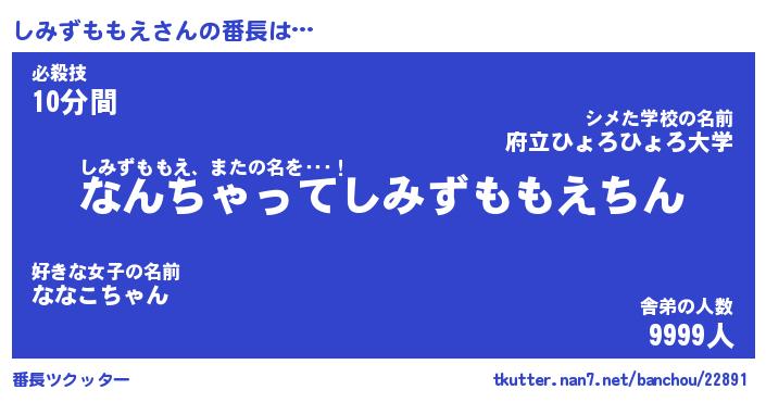 | 胡散臭い通販商品みたいなあだ名 | 『必ず成功するブレスレット…その名も「しみずももえ」』 |