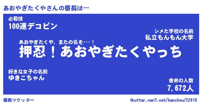 | 肩書あだ名 | 『あおやぎたくや店長』 |