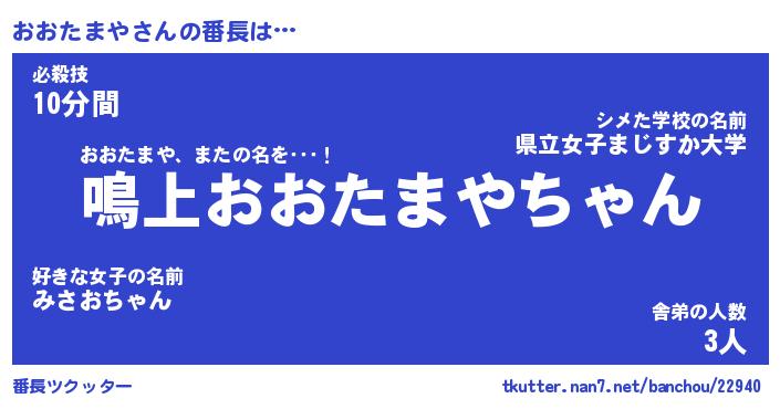 | 男性向けラノベタイトル風あだ名 | 『オオタマヤアートオンライン』 |