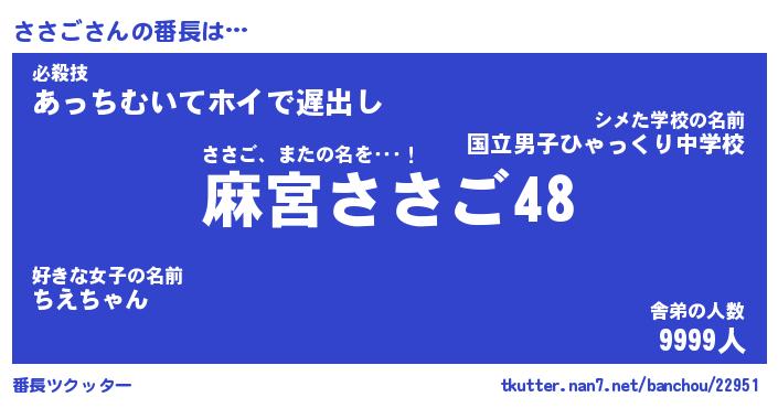 | 肩書あだ名 | 『ささご店長』『ささご国家主席』 |