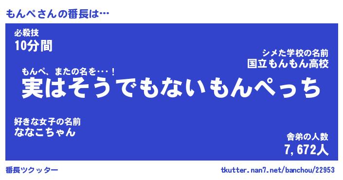 | 2回繰り返すあだ名 | 『もんもん』『ももんん』『おやおや』 |