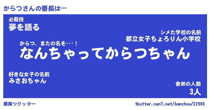 | 意味不明あだ名 | 『ペロリンからつ』『からつフォーエバー』 |