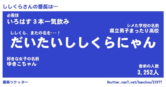 | 意味不明あだ名 | 『ペロリンししくら』『永久保存ししくら』 |