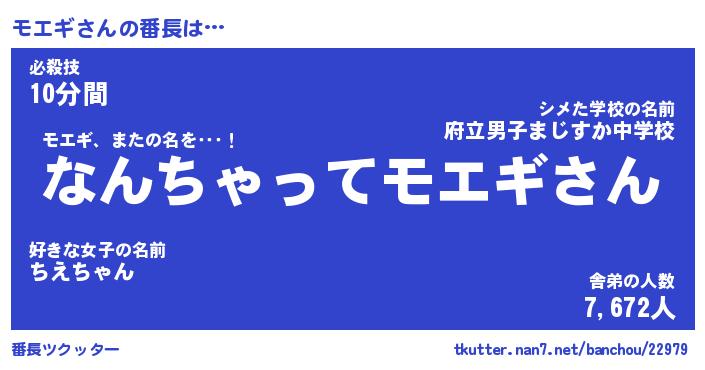 | ヒーロー風カッコイイあだ名 | 『スーパーモエギ』『ウルトラモエギマン』 |