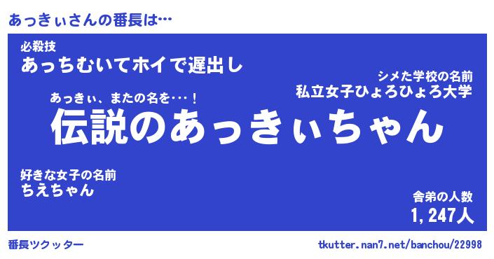 | 意味不明あだ名 | 『ペロリンあっきぃ』『永久保存あっきぃ』 |