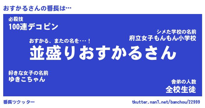 | 意味不明あだ名 | 『ペロリンおすかる』『永久保存おすかる』 |