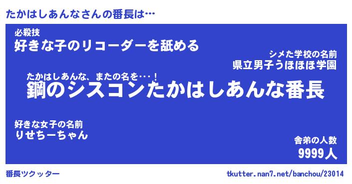 | 料理風あだ名 | 『ネギたっぷりたかはしあんなの南蛮漬け』 |