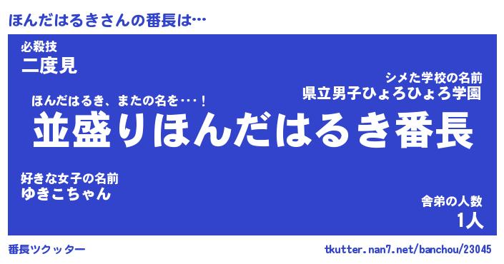 | 2回繰り返すあだ名 | 『ほんほん』『ほほんん』『いらいら』 |
