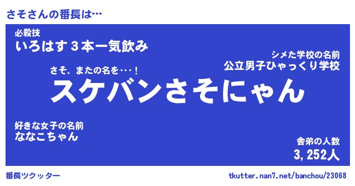 | ピコ太郎風あだ名 | 『サコ六郎』『ピサ五郎』『サソ三郎』 |