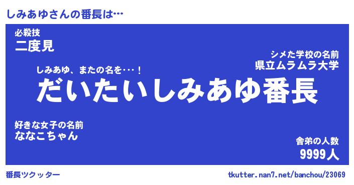 | 肩書あだ名 | 『しみあゆCEO』『しみあゆ国家主席』 |