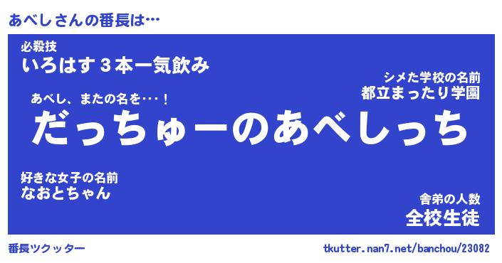 | 意味不明あだ名 | 『ペロリンあべし』『あべしフォーエバー』 |