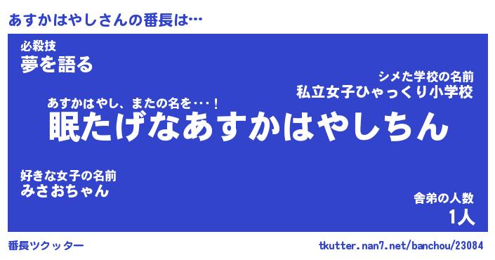 | 伝説のあだ名 | 『封印されしスナイパーあすかはやし』 |