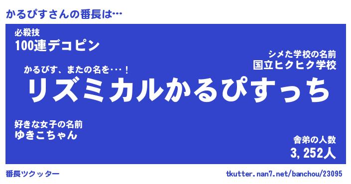 | 男性向けラノベタイトル風あだ名 | 『かるぴすの憂鬱』 |