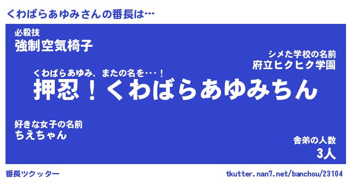 | ヒーロー風カッコイイあだ名 | 『スーパークワバラアユミ』 |