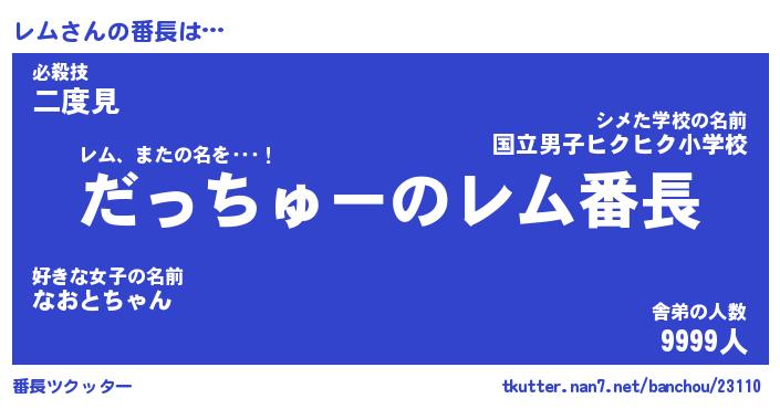 | 意味不明あだ名 | 『ペロリンレム』『レムフォーエバー』 |