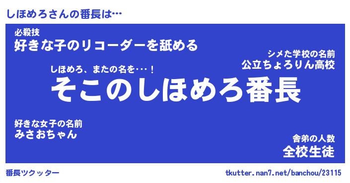 | 意味不明あだ名 | 『ペロリンしほめろ』『永久保存しほめろ』 |