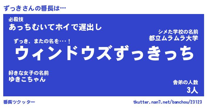 | ヒーロー風カッコイイあだ名 | 『スーパーズッキ』『ウルトラずっきマン』 |