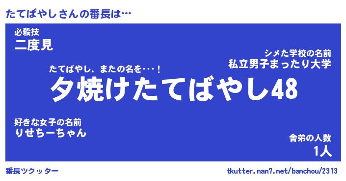 | ファンタジー風あだ名 | 『タテフェル』『エターナルタテバヤシー』 |
