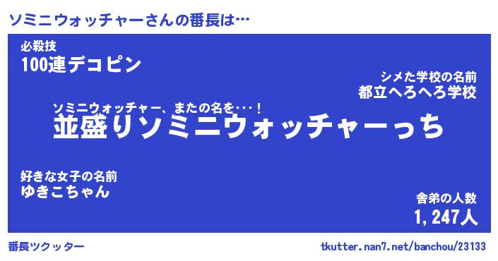 | ヒーロー風カッコイイあだ名 | 『スーパーソミニウォッチャー』 |