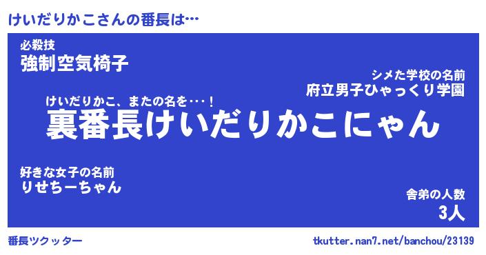 | ヒーロー風カッコイイあだ名 | 『スーパーケイダリカコ』『黄金騎士ケイ』 |