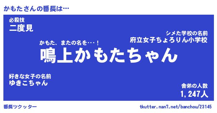 | 2回繰り返すあだ名 | 『かもかも』『かかもも』『ぬるぬる』 |