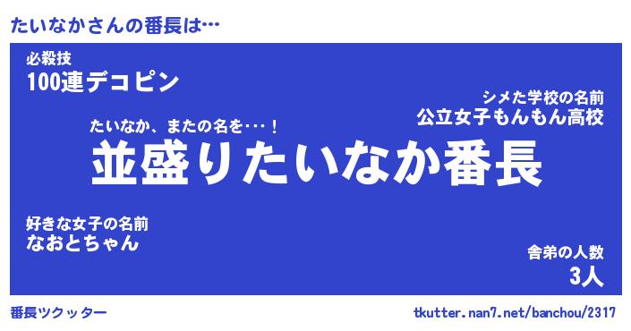 | 意味不明あだ名 | 『ペロリンたいなか』『永久保存たいなか』 |