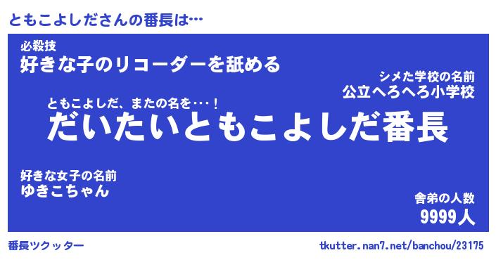 | ヘコむあだ名 | 『ともにー』『なまこ酢』『とも太郎』 |
