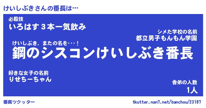 | ファンタジー風あだ名 | 『ケイフェル』『エターナルケイシブキー』 |