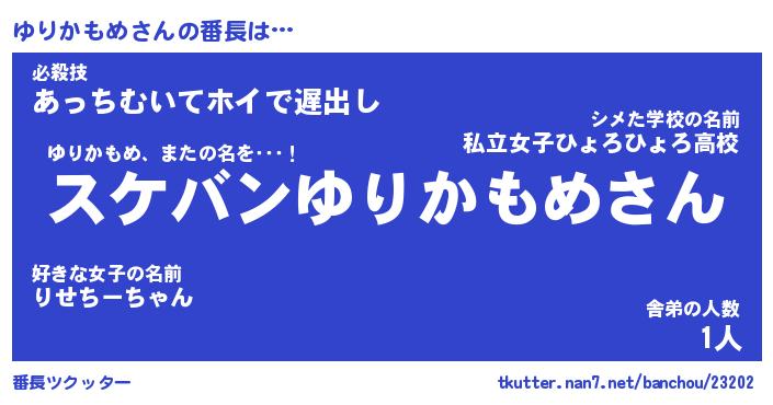 | 2回繰り返すあだ名 | 『ゆりゆり』『ゆゆりり』『ぼちぼち』 |