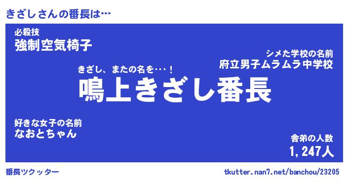 | ヒーロー風カッコイイあだ名 | 『スーパーキザシ』『ウルトラきざしマン』 |
