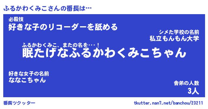| 伝説のあだ名 | 『封印されしスナイパーふるかわくみこ』 |