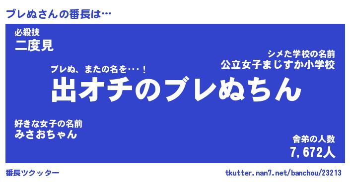 | 男性向けラノベタイトル風あだ名 | 『ブレぬの憂鬱』 |
