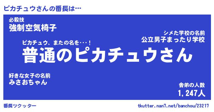 | ヒーロー風カッコイイあだ名 | 『スーパーピカチュウ』『銀牙騎士ピカ』 |