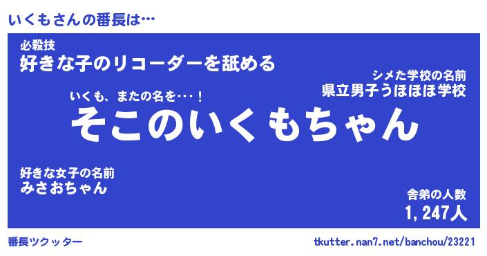 | 意味不明あだ名 | 『ペロリンいくも』『いくもフォーエバー』 |