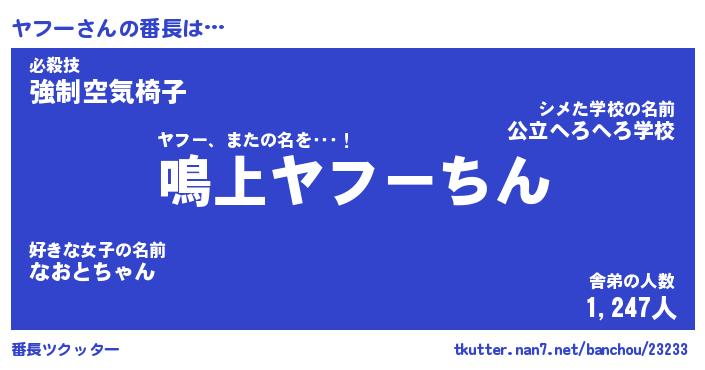 | ヘコむあだ名 | 『ヤフにゅー』『牛乳』『ヤフっぺ』 |