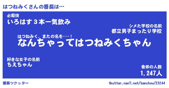 | ファンタジー風あだ名 | 『ハツフェル』『エターナルハツネミクー』 |
