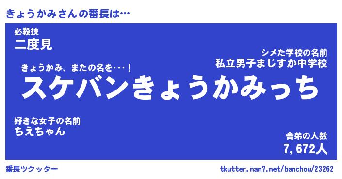 | ファンタジー風あだ名 | 『キョフェル』『エターナルキョウカミー』 |