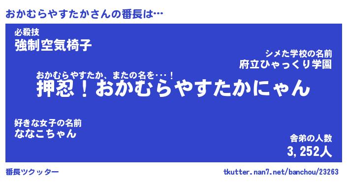 | 肩書あだ名 | 『おかむらやすたか御曹司』 |
