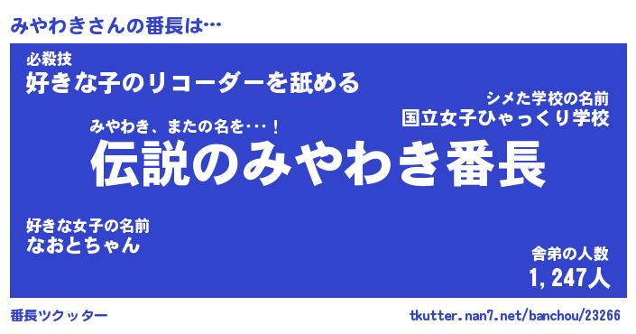 | ファンタジー風あだ名 | 『ミヤフェル』『エターナルミヤワキー』 |