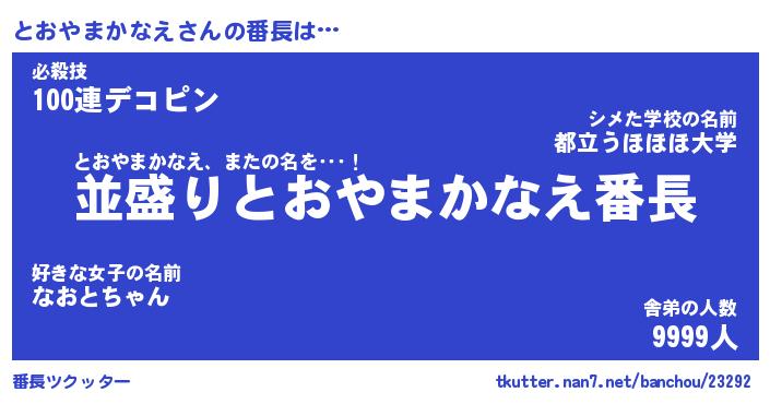 | ポケモン風あだ名 | 『トオチュウ』『トオヤダネ』 |