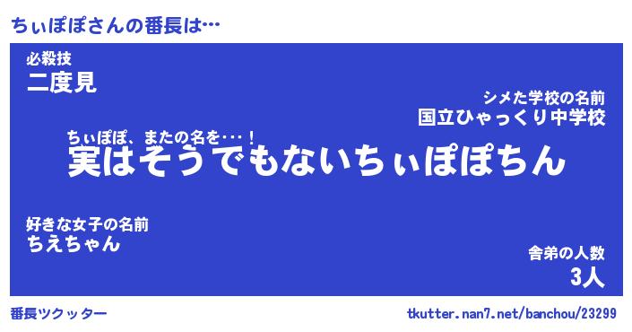 | ファンタジー風あだ名 | 『チィフェル』『エターナルチィポポー』 |