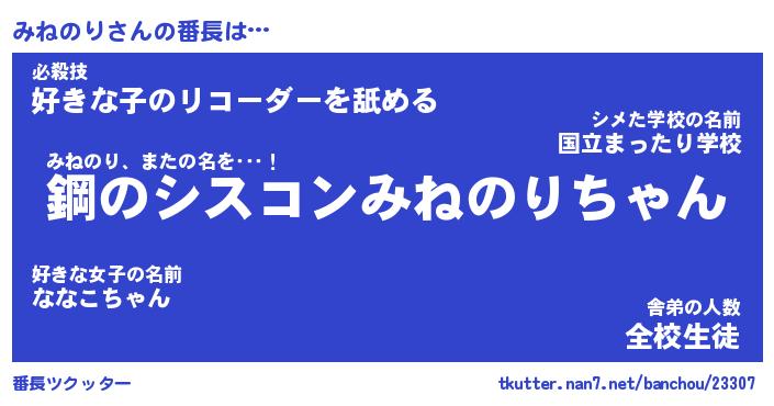 | 意味不明あだ名 | 『ペロリンみねのり』『永久保存みねのり』 |