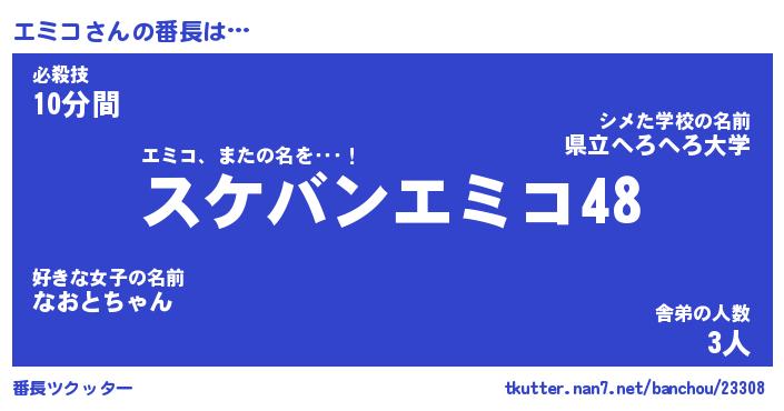 | 意味不明あだ名 | 『ペロリンエミコ』『エミコフォーエバー』 |