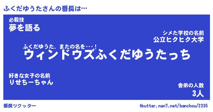 | ポケモン風あだ名 | 『フクチュウ』『フクダダネ』 |